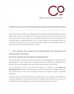 Retrouvez ici notre point de vue sur les enjeux stratégique de transformation des acteurs de l’intérêt général pour assurer leur pérennité et leur impact